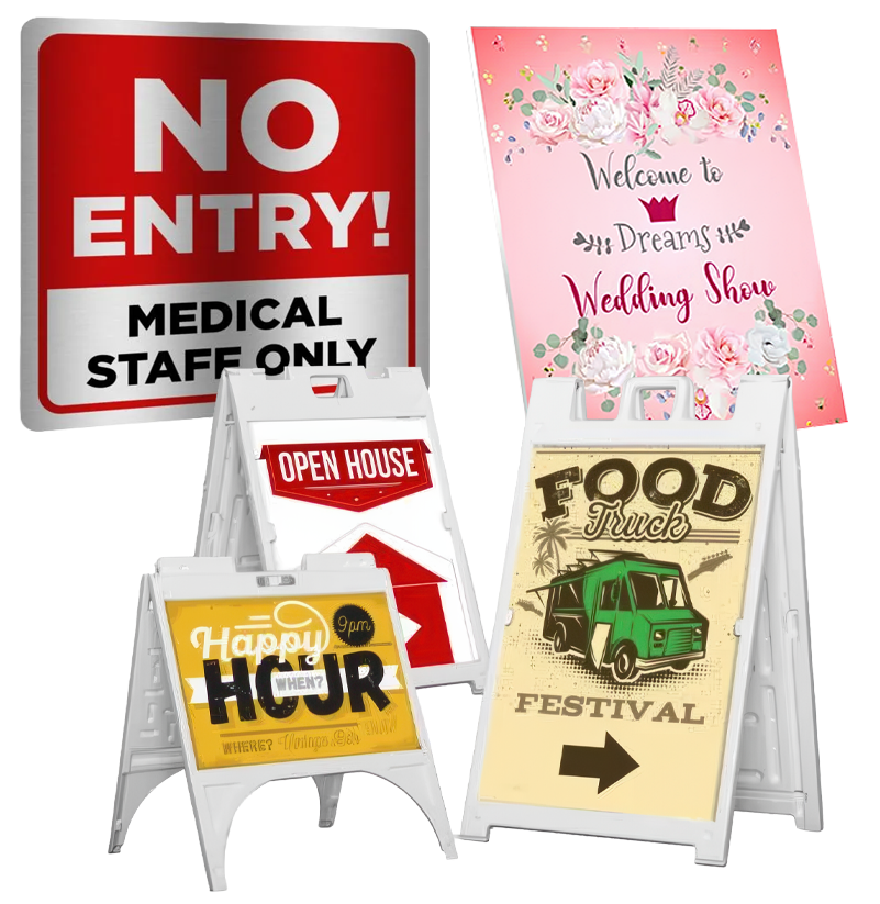Aluminum, Sidewalk A-Frame, Coroplast, Yard Signs, etc.